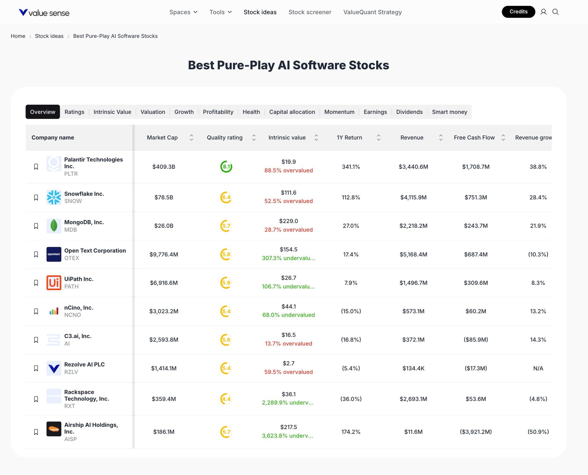 The AI sector continues to drive market innovation, with software companies at the forefront of digital transformation. For this watchlist, we focused on pure-play AI software stocks with strong market presence, robust revenue growth, and clear ValueSense quality ratings. Each stock was selected based on a combination of intrinsic value, recent returns, and sector relevance, ensuring a diversified and opportunity-rich collection for October 2025.