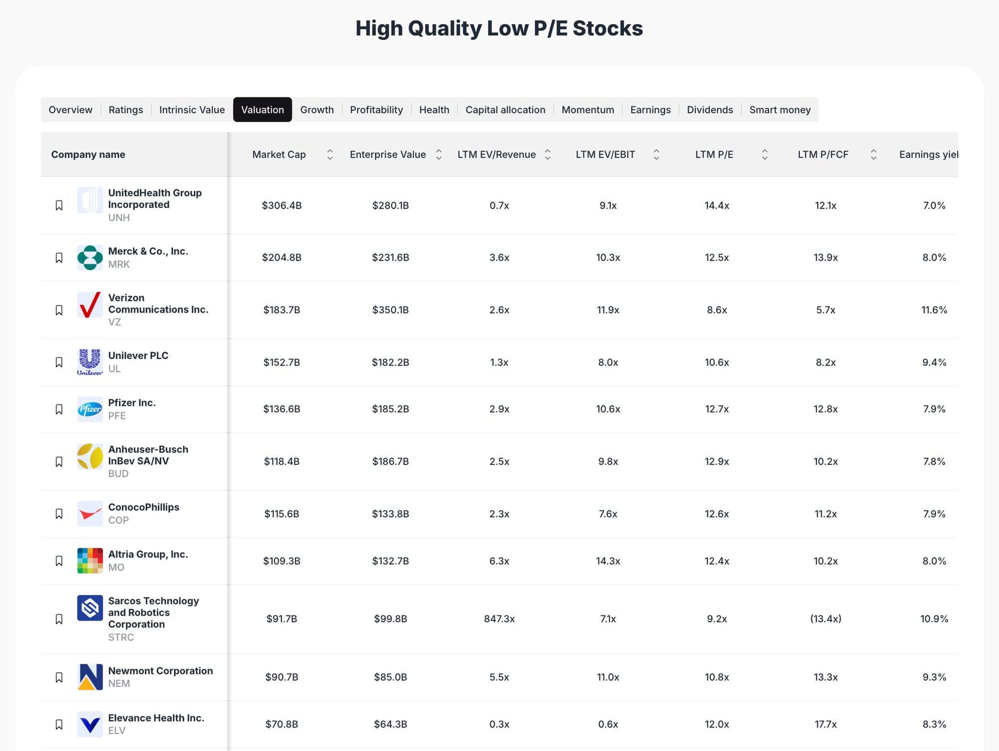 In 2025, market volatility and sector rotation have made valuation discipline essential for investors. This watchlist focuses on stocks with low price-to-earnings (P/E) ratios, which can indicate undervaluation relative to earnings power. Selection criteria include: - Market cap above $60B for stability - LTM (Last Twelve Months) P/E ratios significantly below sector averages - Strong earnings yield and free cash flow metrics - Sector diversification across healthcare, technology, consumer staples, and industrials