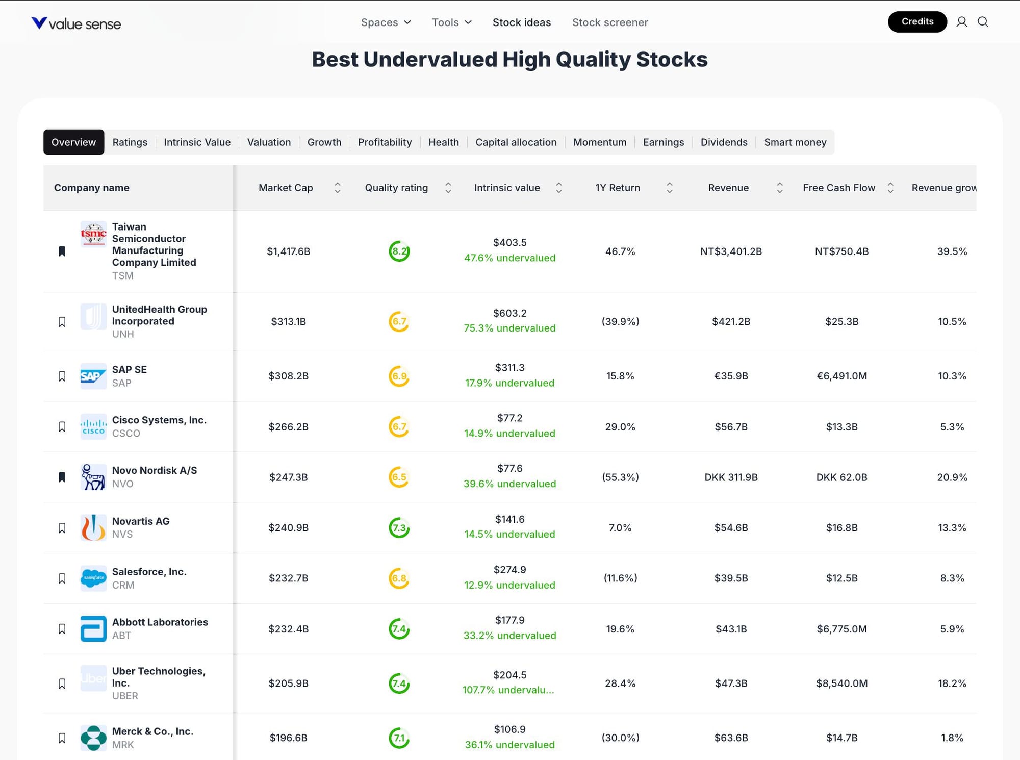 A2: The “best” stock depends on individual investment goals, but TSMC and Uber stand out for their high undervaluation and quality ratings, according to ValueSense’s analysis.