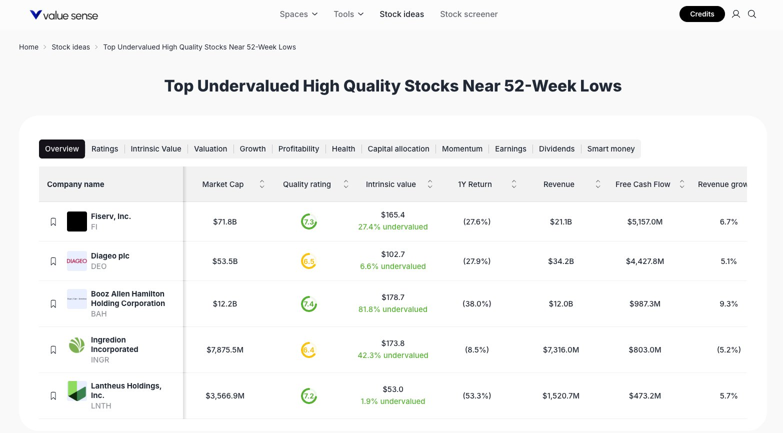 A1: These stocks were chosen based on ValueSense’s proprietary screening for undervaluation, quality ratings, and recent price performance relative to 52-week lows, ensuring a focus on high-quality, fundamentally strong companies.
