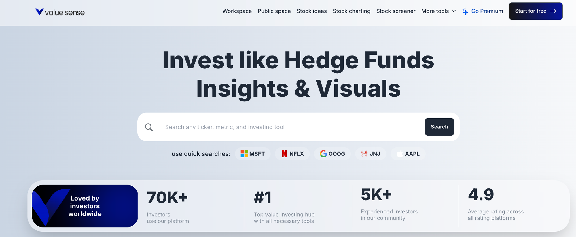 Click the "Start for free" button in the top navigation bar of the ValueSense homepage. This opens the account creation modal.