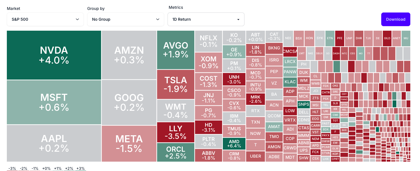 - Set metric to "1D Return" to quickly grasp market sentiment