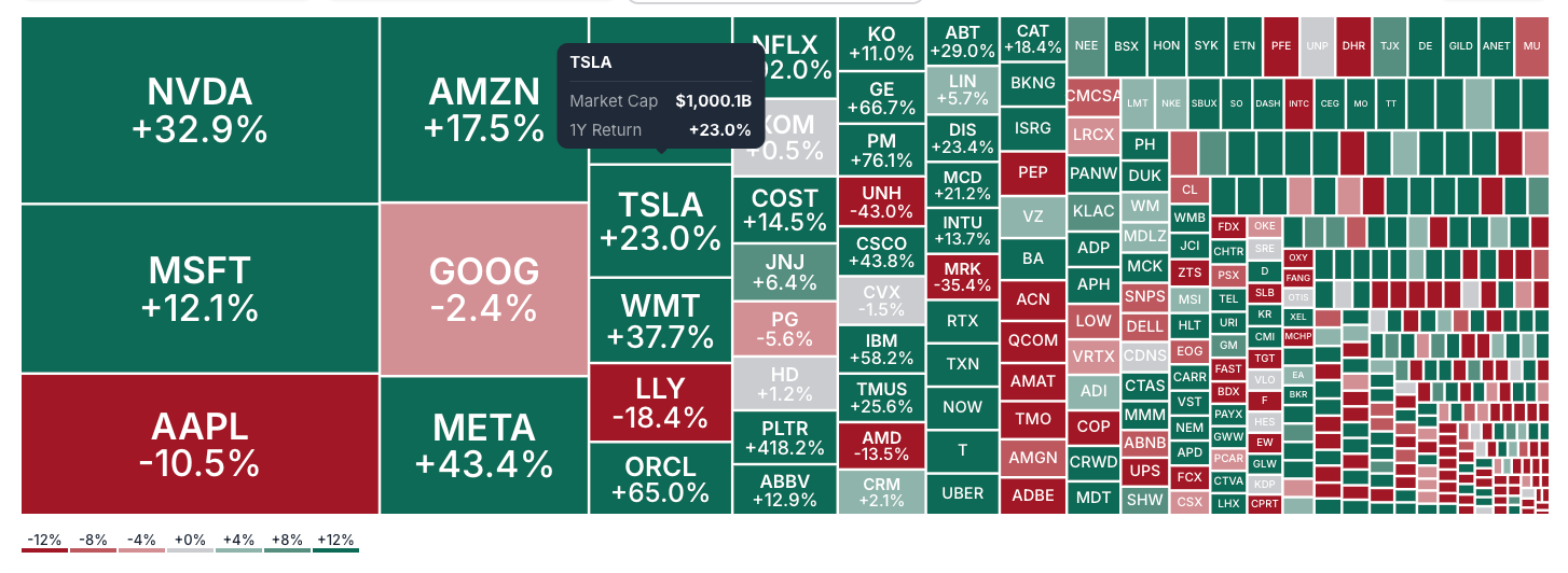 - Rectangle Size: Represents stock's weighting within the index (typically market capitalization)