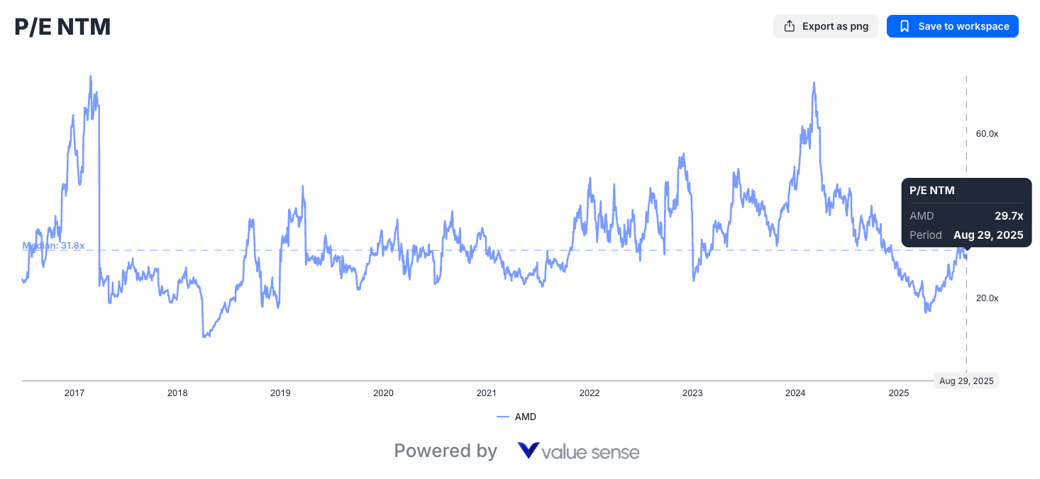 Despite years of consistent execution and market share gains, AMD continues trading at valuations that seem disconnected from its operational performance. The company's P/E ratio remains below its 15-year average even as it delivers superior growth rates compared to traditional semiconductor peers.