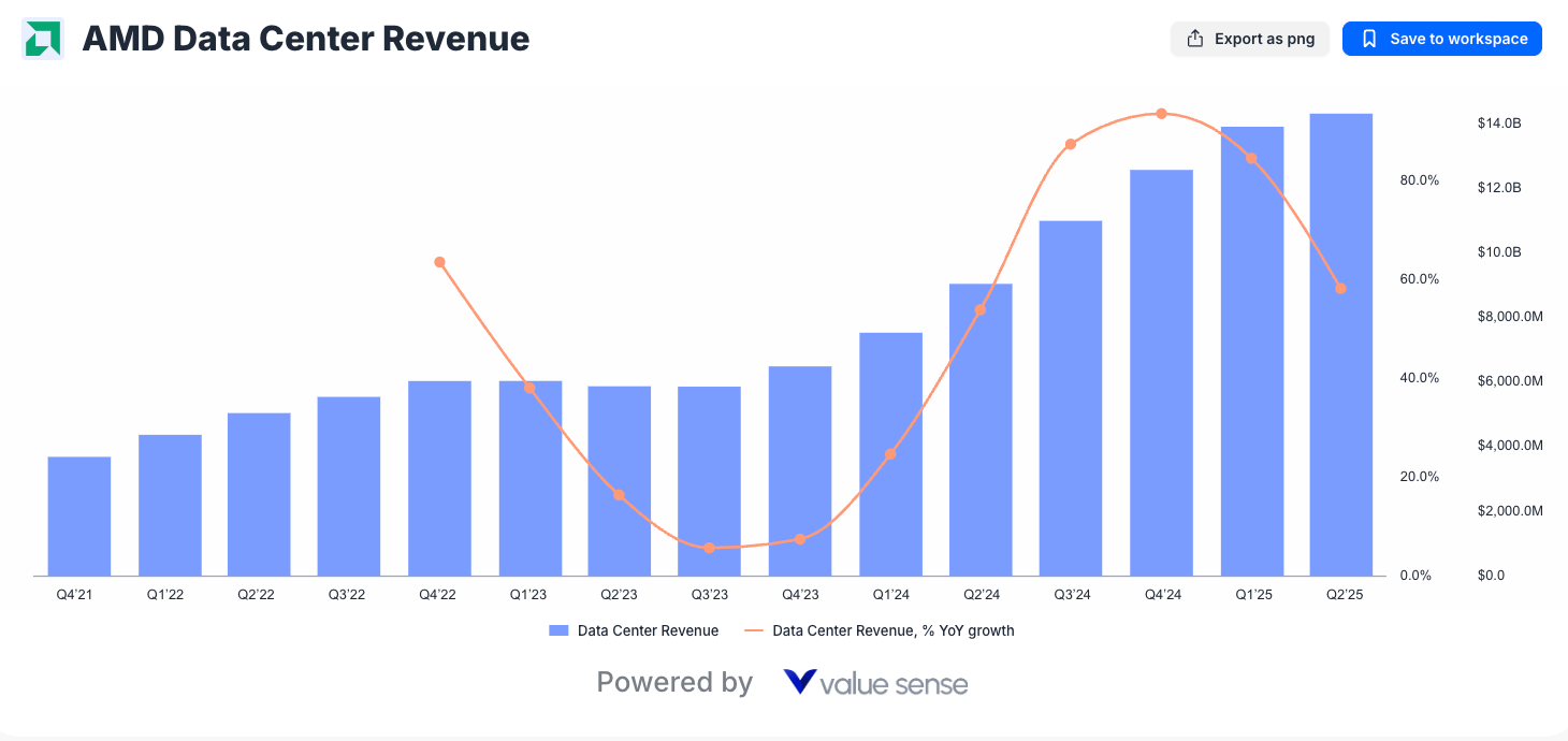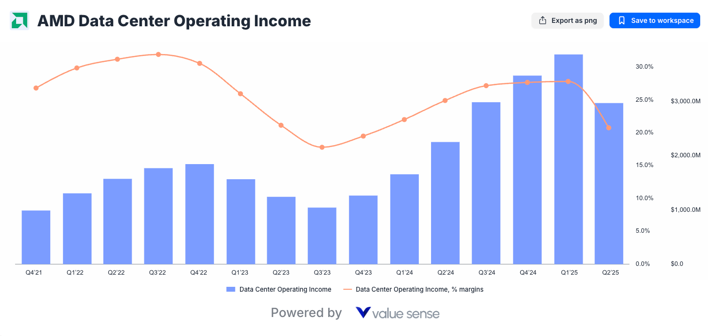 - Data center revenue expansion driven by EPYC processor adoption
