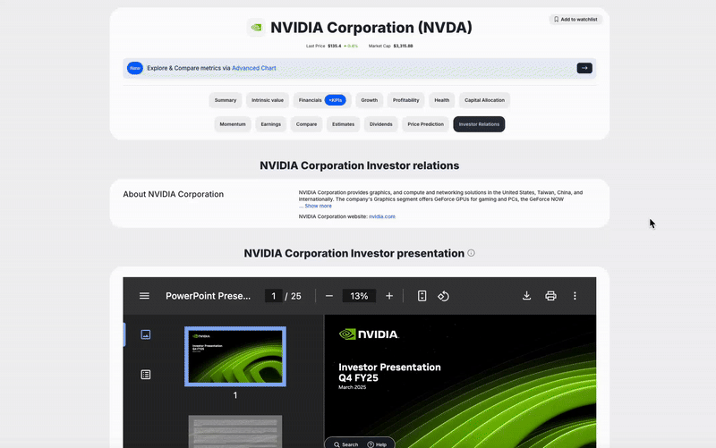 No more wasting hours navigating through complex corporate websites to find critical investor presentations. Value Sense centralizes official investor documents in one accessible location, saving time and ensuring you never miss important disclosures.