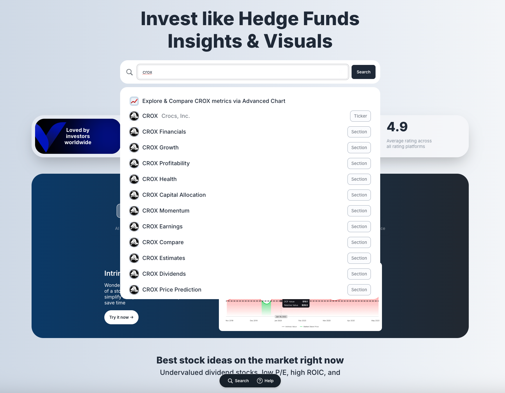 To get started with ValueSense, we recommend beginning with the core of our platform - fundamental stock analysis. You can access this powerful feature using the search functionality on our homepage or through the floating search console that's always available at the bottom of your screen.