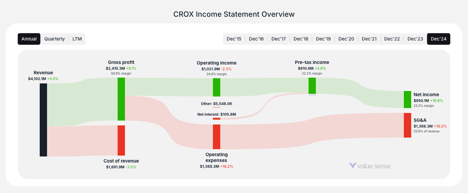 - Period buttons (Annual, Quarterly, LTM) to adjust data frequency