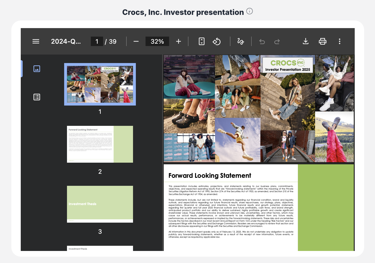 Integrated Document Viewer: The Investor Relations tab includes an embedded PDF viewer, allowing you to review earnings presentations, annual reports, and other official documents without leaving the platform.