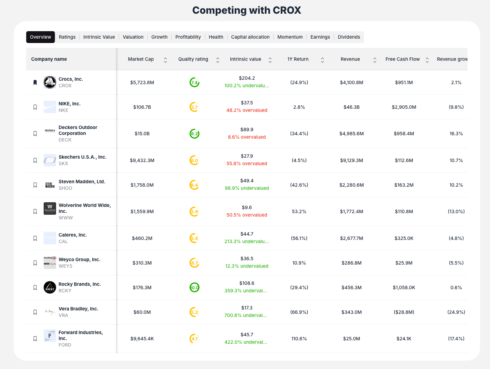 - And more categories for Valuation, Growth, Profitability, Dividends