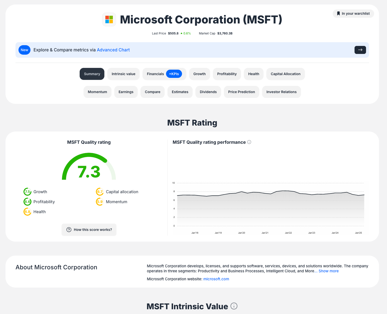 Search Company: Use ticker symbol (e.g., "MSFT") from homepage search bar or quick links