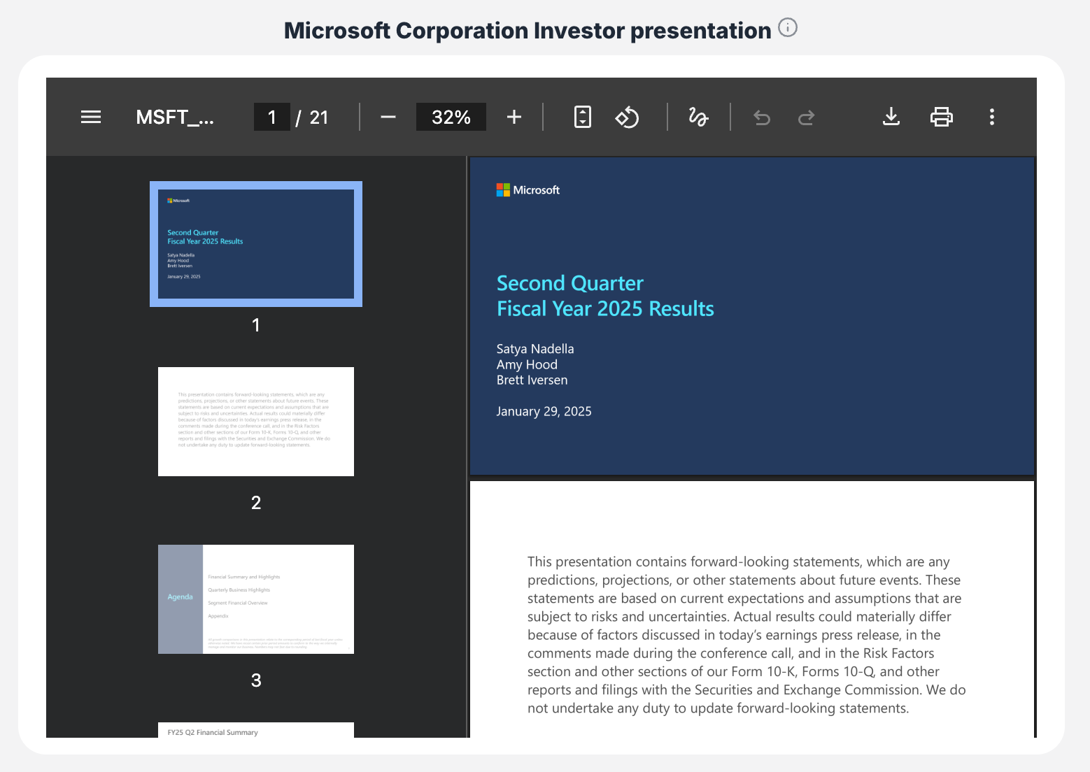- Example: "Second Quarter Fiscal Year 2025 Results"