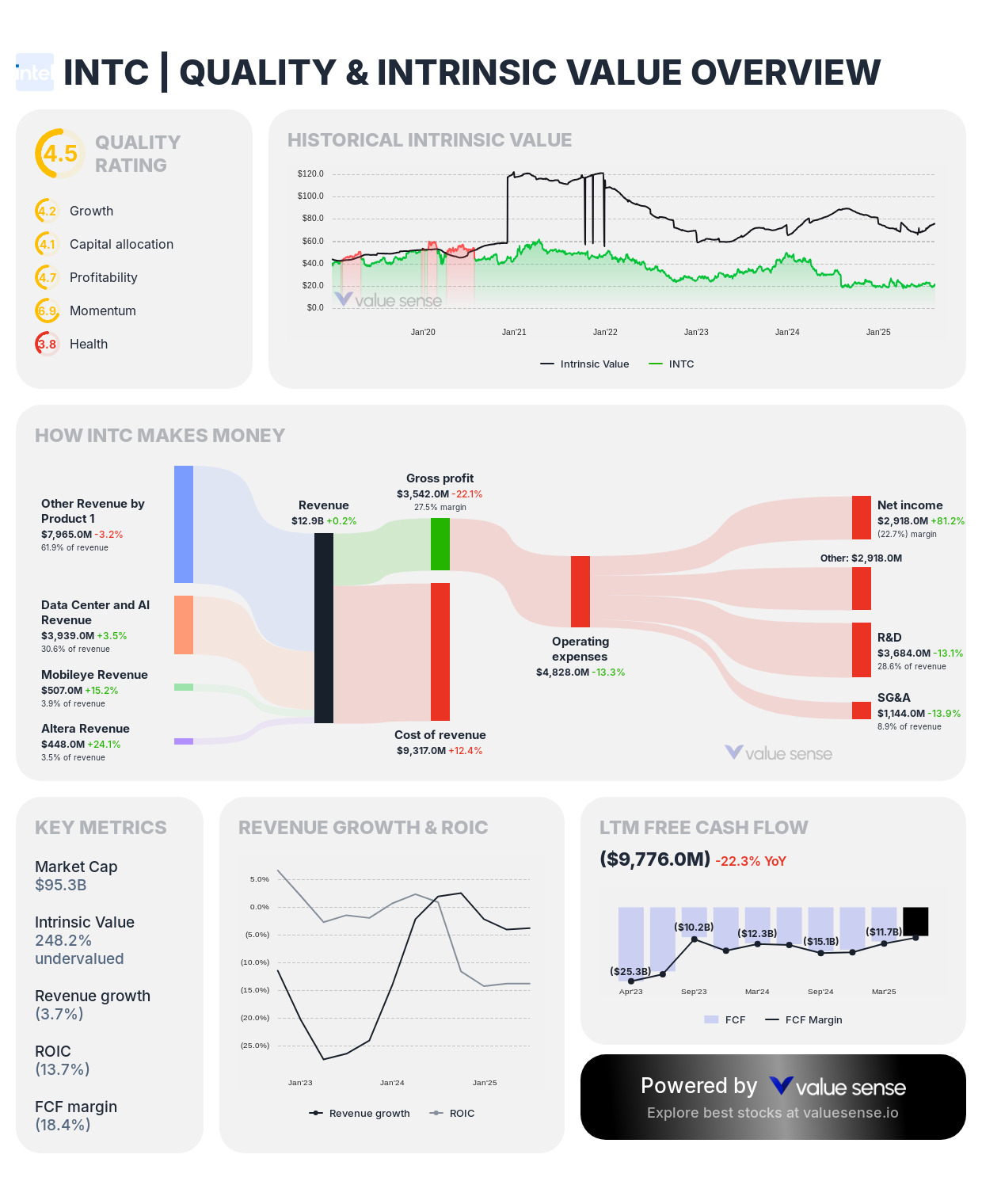 - INTC: Deep value opportunity with 2.4x EV/Revenue despite challenges