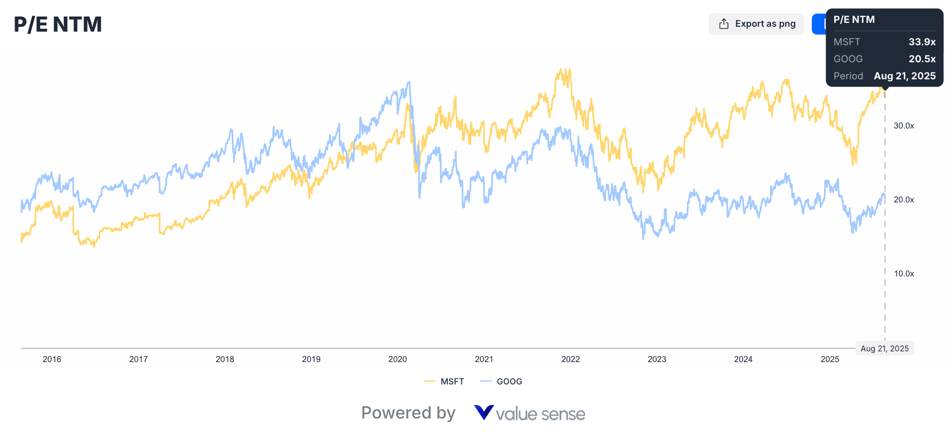| P/E NTM | 33.9x | 20.5x | GOOGL |