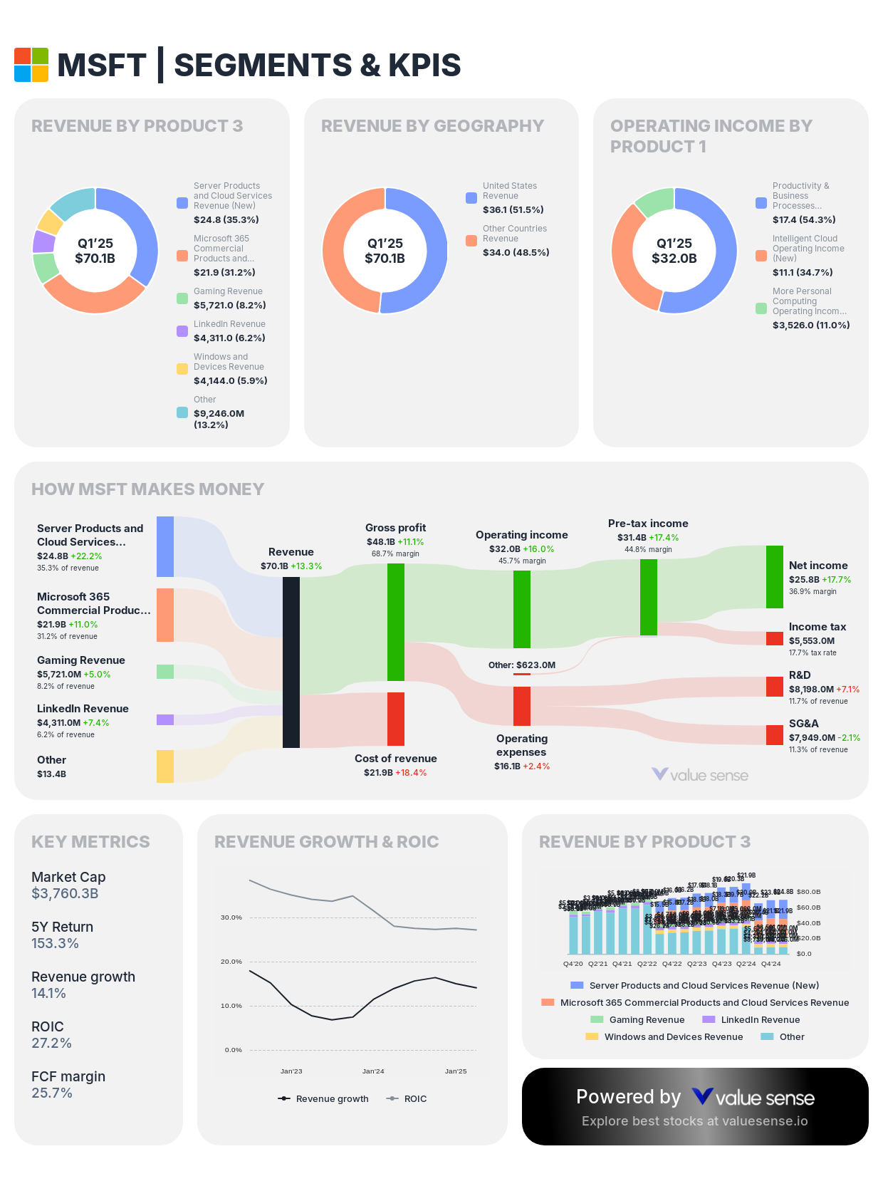 - How [Company] Makes Money: Sankey diagram showing revenue flow from segments to net income