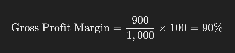 For example, if a company’s revenue is $1,000 and the gross profit is $900, the gross profit margin is: