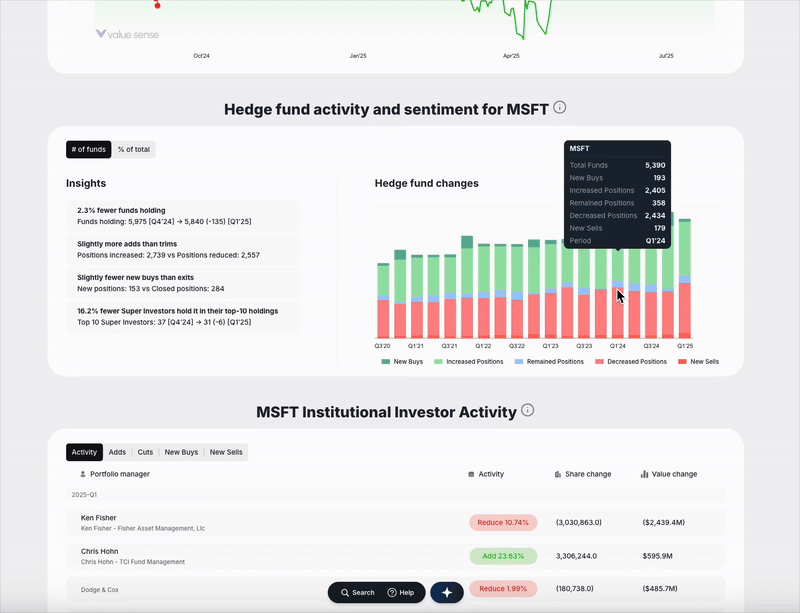 - Total funds holding MSFT decreased by 2.3% (institutional consolidation)