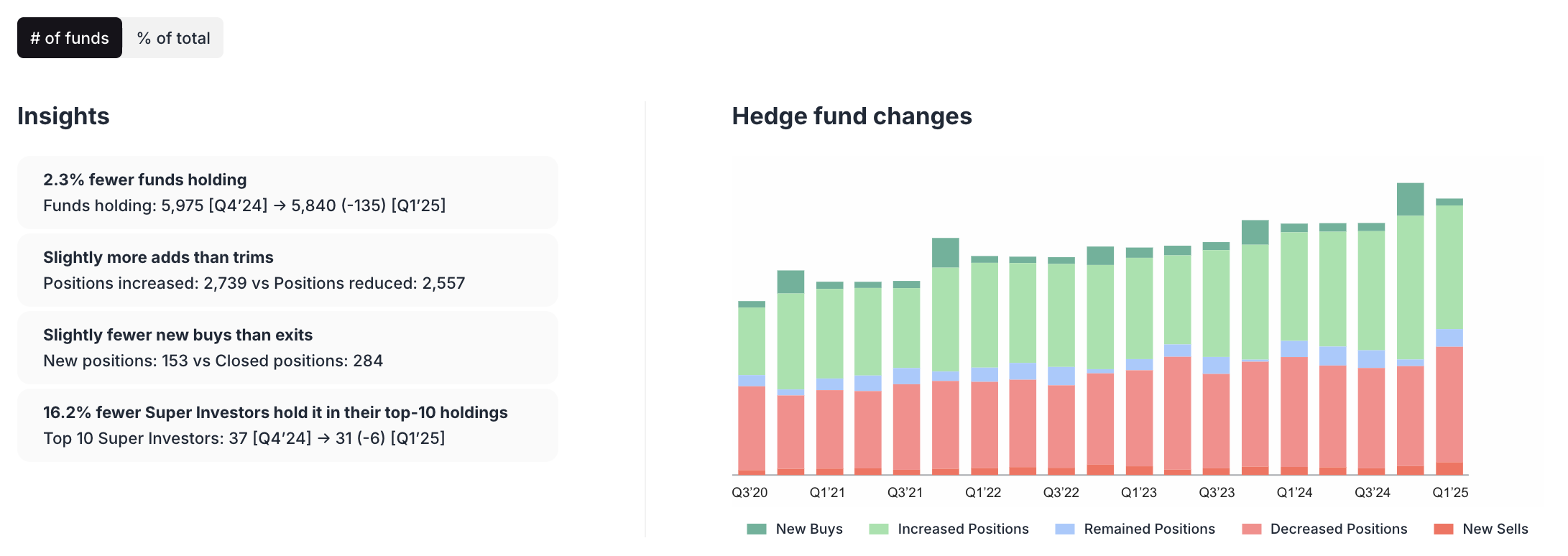 - Institutional data reveals selective conviction (fewer funds, but stronger positions)