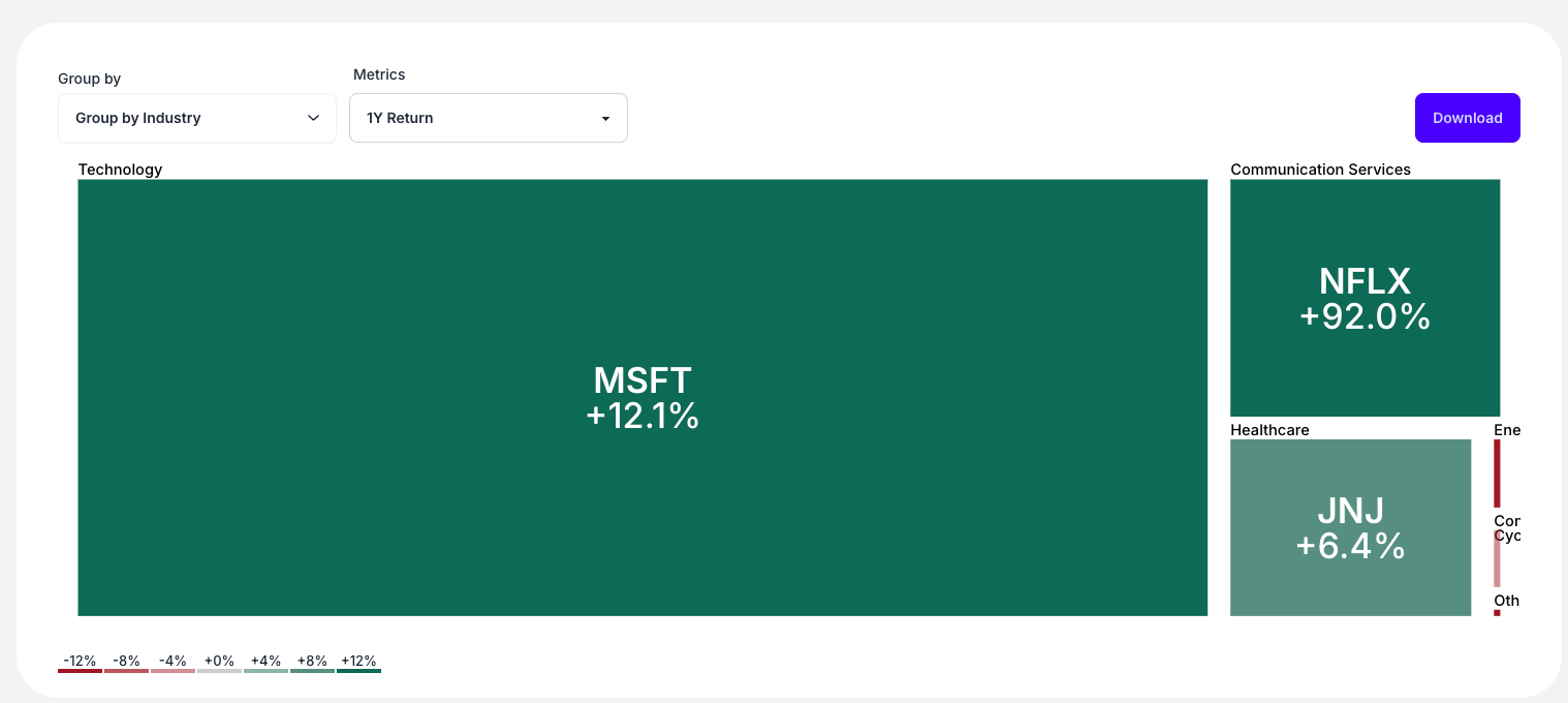 - Multiple Time Frames: 1D, 1W, 1M, 3M, 6M, YTD, 1Y returns