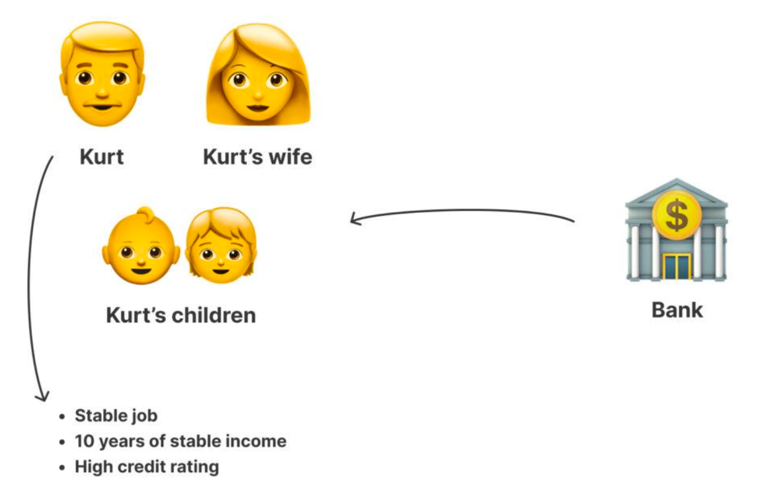 Let’s look at the situation, taking as an example a hypothetical US citizen, who we’ll call Kurt. Kurt is the perfect man. He has a net salary, pays his mortgage on time, and even runs in the mornings. And if Kurt is fired, he has additional earnings and a safety cushion.