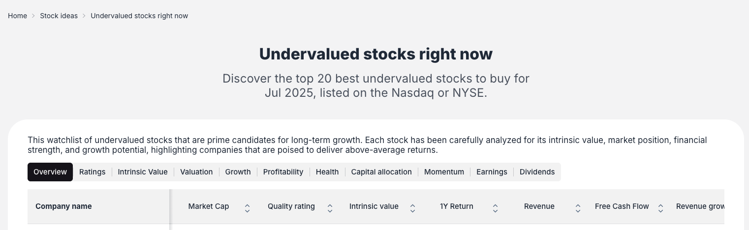 - Undervalued stocks right now: Companies trading below their intrinsic value